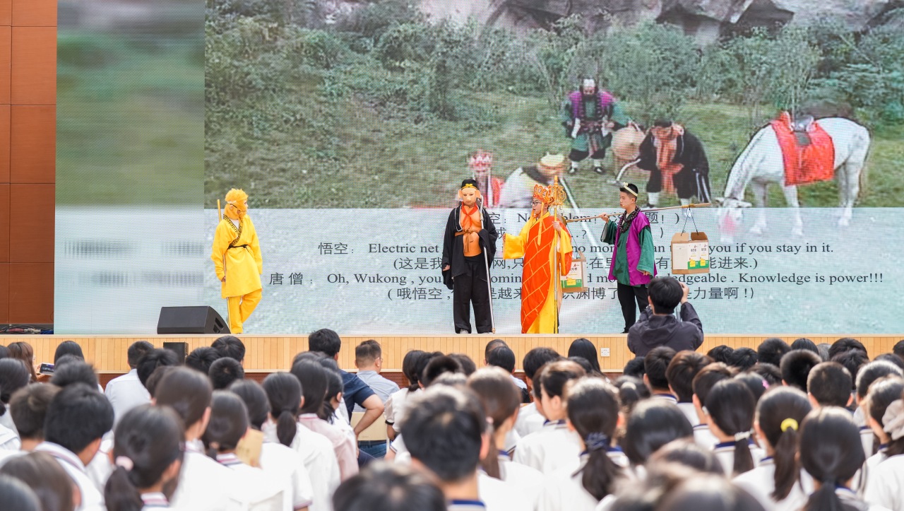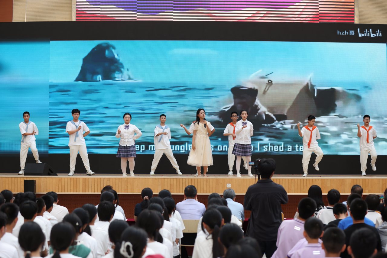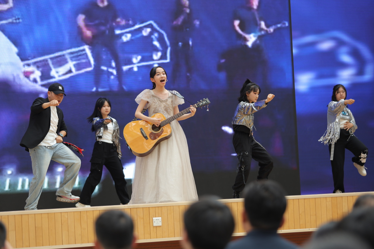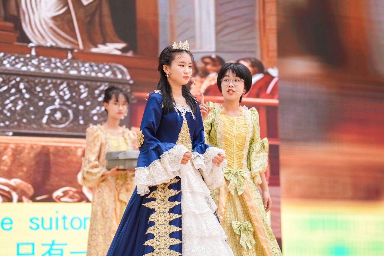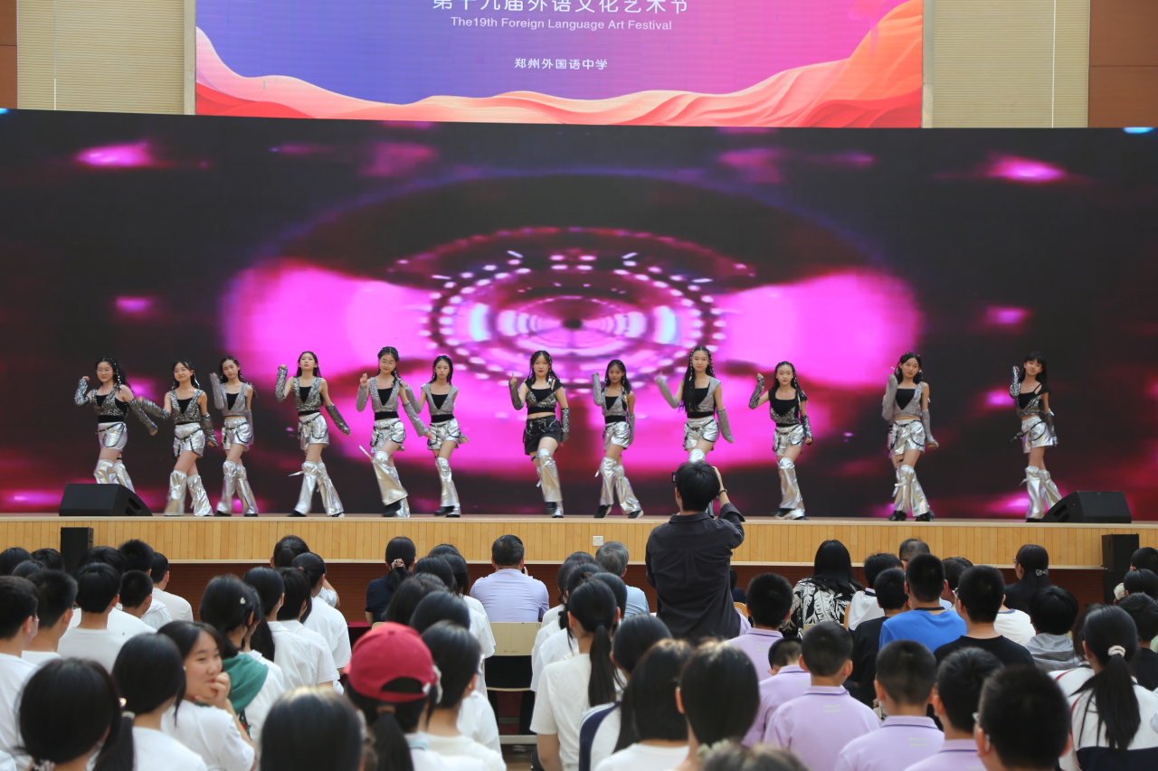 当“威尼斯商人”穿越到你我身边, 当爱丽丝牵手莉莉开始奇幻冒险, 当标准的英伦腔带领众人云游中国…… 两年一度的外语文化艺术节汇演, 郑州外国语中学一校三区七、八年级师生齐聚总校区体育馆, 在这里—— ✅ 为古典话剧注入现代精神,于古韵中奏响时代新声 ✅ 嘹亮歌声勾勒出青春风采,快乐音符流淌进少年心中 ✅ 多国语言演绎中国古典诗歌,起伏的韵律是文明的生动韵脚 ✅ 快来围观,重温燃爆的现场! 七年级外语文化艺术节 主持人亮相 现代舞社团《Good Time》 7.7班、7.11班配音秀《我们一起,走遍中国》 7.1班《Tough Love》(严厉的爱) 教师配乐诗朗诵(英、德、法、日)《春江花月夜》 7.12班、7.6班、7.8班《We All in This Together》 7.7班《Promise of the Desert Rose》(沙漠玫瑰的约定) 西流湖校区《Try Everything》 莲湖校区7.5班《武林外传·吕秀才大战姬无命》 7.7班、7.9班、7.5班《The Beat of Youth》 7.6班《Harry Potter and the Cursed Child》(哈利波特与被诅咒的孩子) 莲湖校区7.6班《Drama》 莲湖校区7.3班《请君入梦》 7.10班、丘成桐班、7.2班、7.3班《The Light of Youth》(青春之光) 7.4班《天鹅湖》 莲湖校区7.1班、7.4班、7.5班、7.8班《Sunshine in My Step》 (踏步阳光) 八年级外语文化艺术节 主持人亮相 8.6班《Counting Stars》 8.5班《西游记(三打白骨精) 8.7班《Tomorrow Comes》(悲惨世界—天明曙光) 8.8班、8.2班、8.11班、8.7班《跃海之歌》 莲湖校区8.6班《爱丽丝与莉莉的奇幻冒险》 8.7班、8.12班趣配音《唐探1900》《后妈茶话会》 8.9班《The Heart to Return to Home》(归国赤子心) 8.12班《Yellow》 莲湖校区8.3班《西门豹治邺》 莲湖校区8.1班《Look at Me Now》 8.4班《音乐之声》 莲湖校区8.2班、8.4班、舞蹈社《Happy Feet,Happy Beats》(欢脱舞步,心跳节奏) 莎士比亚戏剧社《威尼斯商人》 8.8班、8.1班、8.4班、8.3班《Dance Medlay》 光阴流转,跨越十九届的外语文化艺术节,已然凝练为郑州外国语中学"向世界讲述华夏文明"育人哲学的生命化诠释。当少年们用多语种复刻文明瑰宝,用艺术语言消弭文化边界,这场语言艺术与人文素养的深度对话,不仅是五育并举教育生态的常青藤,更是培铸兼具赤子之心与寰球视野的时代新人的三维坐标系。 聚光灯下的每一次文化共振,都是郑外学子破译文明密码、架设理解长桥的成长宣言;思想星火与艺术灵光的每一次交辉,都在熔铸未来国际传播使者的精神内核——既能以多声部传递东方韵律,又能用世界语汇诠释文化根脉。这方融合性育人场域,既投射着青春拔节的生命光谱,更擘画着新时代"以文铸魂、以创化人"的教育图腾。 每一次舞台上的精彩呈现,都是郑外学子跨越语言壁垒、搭建文化桥梁的勇敢尝试;每一次思想与艺术的碰撞,都在为培育能在国际舞台上传递中国声音、展现文化自信的未来使者积蓄力量。这方舞台不仅照亮了学子的成长之路,更勾勒出郑州外国语中学以文化育人、以开放育新的教育蓝图。 图片:政教处、办公室 文字、编辑:办公室 审核:办公室 【END】 当“威尼斯商人”穿越到你我身边, 当爱丽丝牵手莉莉开始奇幻冒险, 当标准的英伦腔带领众人云游中国…… 两年一度的外语文化艺术节汇演, 郑州外国语中学一校三区七、八年级师生齐聚总校区体育馆, 在这里—— ✅ 为古典话剧注入现代精神,于古韵中奏响时代新声 ✅ 嘹亮歌声勾勒出青春风采,快乐音符流淌进少年心中 ✅ 多国语言演绎中国古典诗歌,起伏的韵律是文明的生动韵脚 ✅ 快来围观,重温燃爆的现场! 七年级外语文化艺术节 主持人亮相 现代舞社团《Good Time》 7.7班、7.11班配音秀《我们一起,走遍中国》 7.1班《Tough Love》(严厉的爱) 教师配乐诗朗诵(英、德、法、日)《春江花月夜》 7.12班、7.6班、7.8班《We All in This Together》 7.7班《Promise of the Desert Rose》(沙漠玫瑰的约定) 西流湖校区《Try Everything》 莲湖校区7.5班《武林外传·吕秀才大战姬无命》 7.7班、7.9班、7.5班《The Beat of Youth》 7.6班《Harry Potter and the Cursed Child》(哈利波特与被诅咒的孩子) 莲湖校区7.6班《Drama》 莲湖校区7.3班《请君入梦》 7.10班、丘成桐班、7.2班、7.3班《The Light of Youth》(青春之光) 7.4班《天鹅湖》 莲湖校区7.1班、7.4班、7.5班、7.8班《Sunshine in My Step》 (踏步阳光) 八年级外语文化艺术节 主持人亮相 8.6班《Counting Stars》 8.5班《西游记(三打白骨精) 8.7班《Tomorrow Comes》(悲惨世界—天明曙光) 8.8班、8.2班、8.11班、8.7班《跃海之歌》 莲湖校区8.6班《爱丽丝与莉莉的奇幻冒险》 8.7班、8.12班趣配音《唐探1900》《后妈茶话会》 8.9班《The Heart to Return to Home》(归国赤子心) 8.12班《Yellow》 莲湖校区8.3班《西门豹治邺》 莲湖校区8.1班《Look at Me Now》 8.4班《音乐之声》 莲湖校区8.2班、8.4班、舞蹈社《Happy Feet,Happy Beats》(欢脱舞步,心跳节奏) 莎士比亚戏剧社《威尼斯商人》 8.8班、8.1班、8.4班、8.3班《Dance Medlay》 光阴流转,跨越十九届的外语文化艺术节,已然凝练为郑州外国语中学"向世界讲述华夏文明"育人哲学的生命化诠释。当少年们用多语种复刻文明瑰宝,用艺术语言消弭文化边界,这场语言艺术与人文素养的深度对话,不仅是五育并举教育生态的常青藤,更是培铸兼具赤子之心与寰球视野的时代新人的三维坐标系。 聚光灯下的每一次文化共振,都是郑外学子破译文明密码、架设理解长桥的成长宣言;思