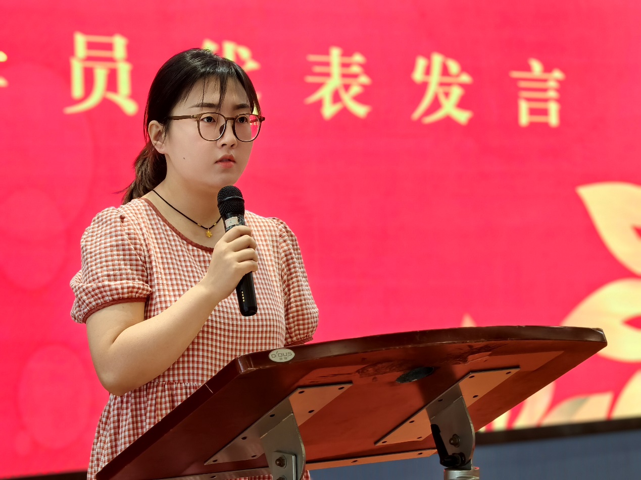 52中的陈妍老师代表全体学员教师进行了发言,她表达了对此次培训的期待,承诺将以饱满的热情、端正的态度参与学习,积极与专家、同行交流,努力将所学知识转化为教学实践,为集团教育事业贡献力量。