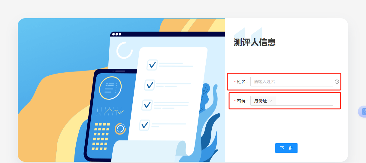 第二步:进入登录页面后,填写【学生姓名】和【身份证号】(身份证尾号X大小写均可,港澳户籍/国外户籍证件号直接填写,例:H10175826。)