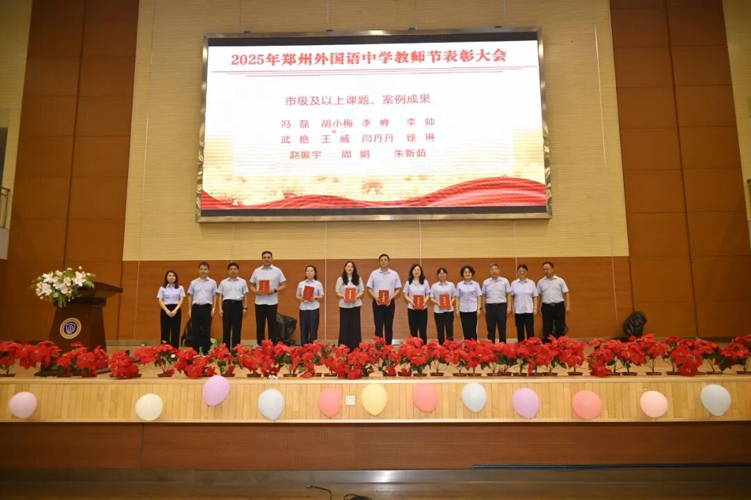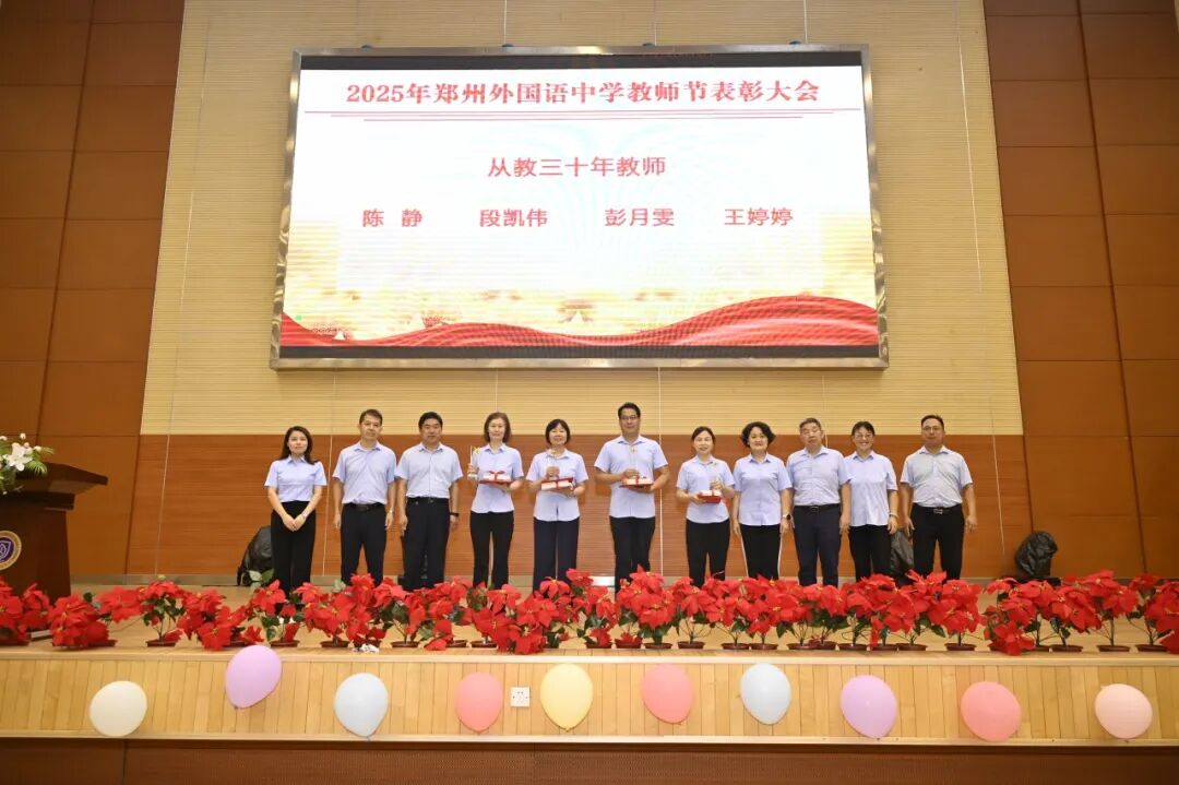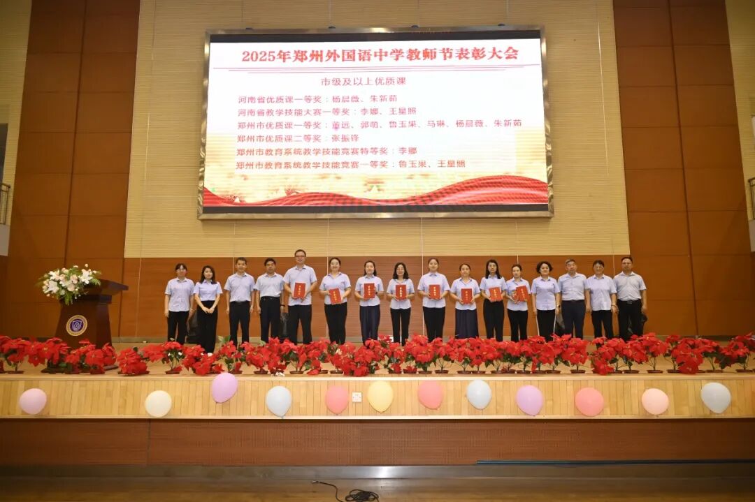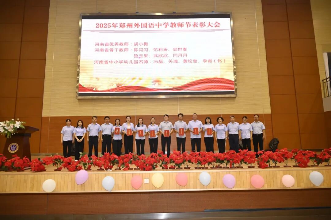 随后,教学校长王延钊宣读了过去一年学校教师所取得的各项荣誉。获奖教师分批上台领奖,有从教三十年教师、省市级优质课获得者、课题主持人以及各级各类骨干教师、名师等。这份荣誉,不仅是对他们默默耕耘的认可,更是郑外教育精神的生动诠释。