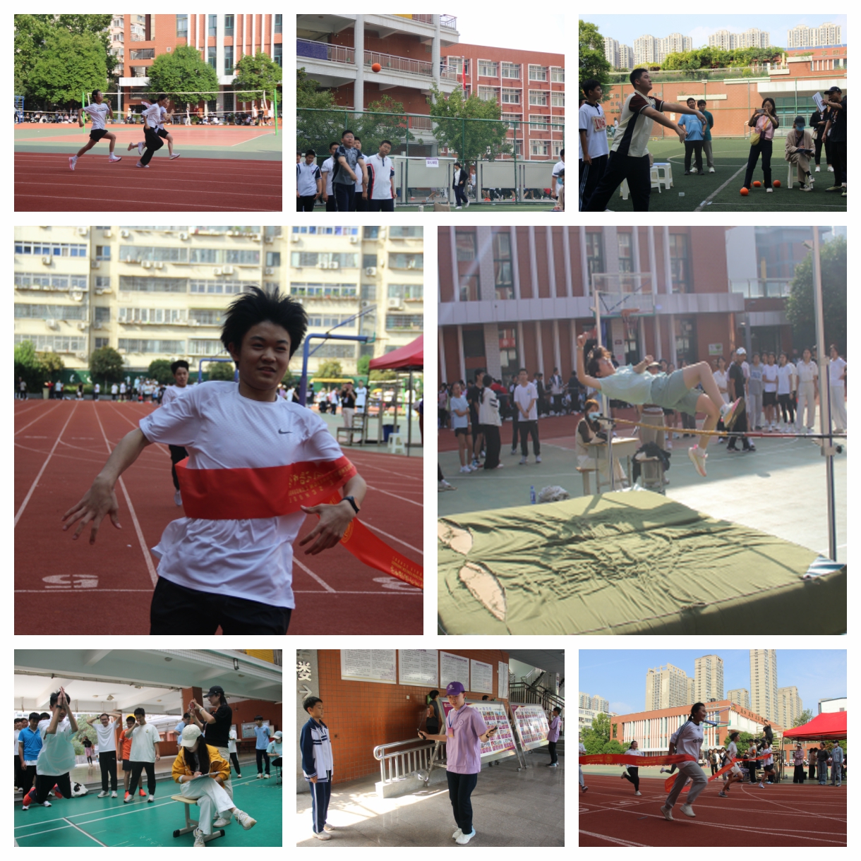 赛场上,运动健儿们成为了绝对的主角。短跑运动员如离弦之箭,在跑道上演绎着速度与激情;长跑运动员用坚韧的毅力诠释着永不言弃的精神;田赛场上的跳高、跳远运动员奋力一跃,划出优美的弧线;实心球运动员的奋力一掷,凝聚着力量与技巧。赛场边,啦啦队的加油声、呐喊声此起彼伏,汇成了一首动人的青春交响曲。整个运动场处处洋溢着拼搏、友爱、互助的氛围,充分展现了我校师生良好的体育道德风尚。