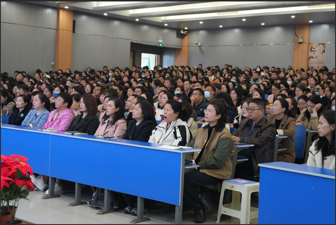在五楼报告厅集中环节,学校领导结合初中阶段的学习特点与新生适应规律,向家长们详细解读了初中与小学在课程设置、学习节奏、自主管理要求等方面的差异,强调了入学初期家校协同的重要性。领导表示,初中是孩子成长的关键转折期,学校将通过个性化引导、习惯培养课程等方式帮助新生适应,但更需要家长密切配合,形成教育合力。