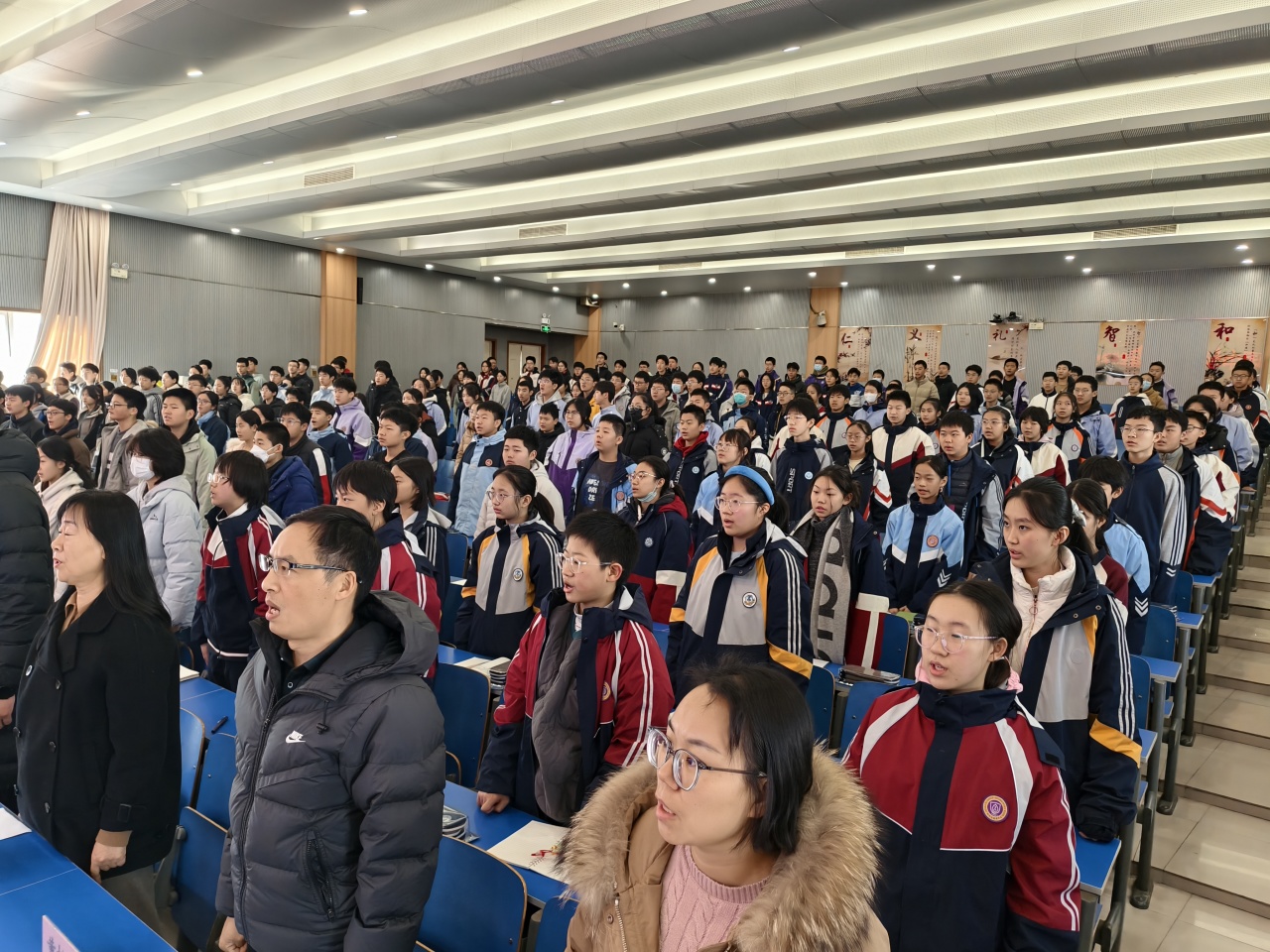 大会在庄严的国歌声中拉开帷幕。全体与会人员肃立齐唱,展现了郑外师生昂扬的精神风貌。