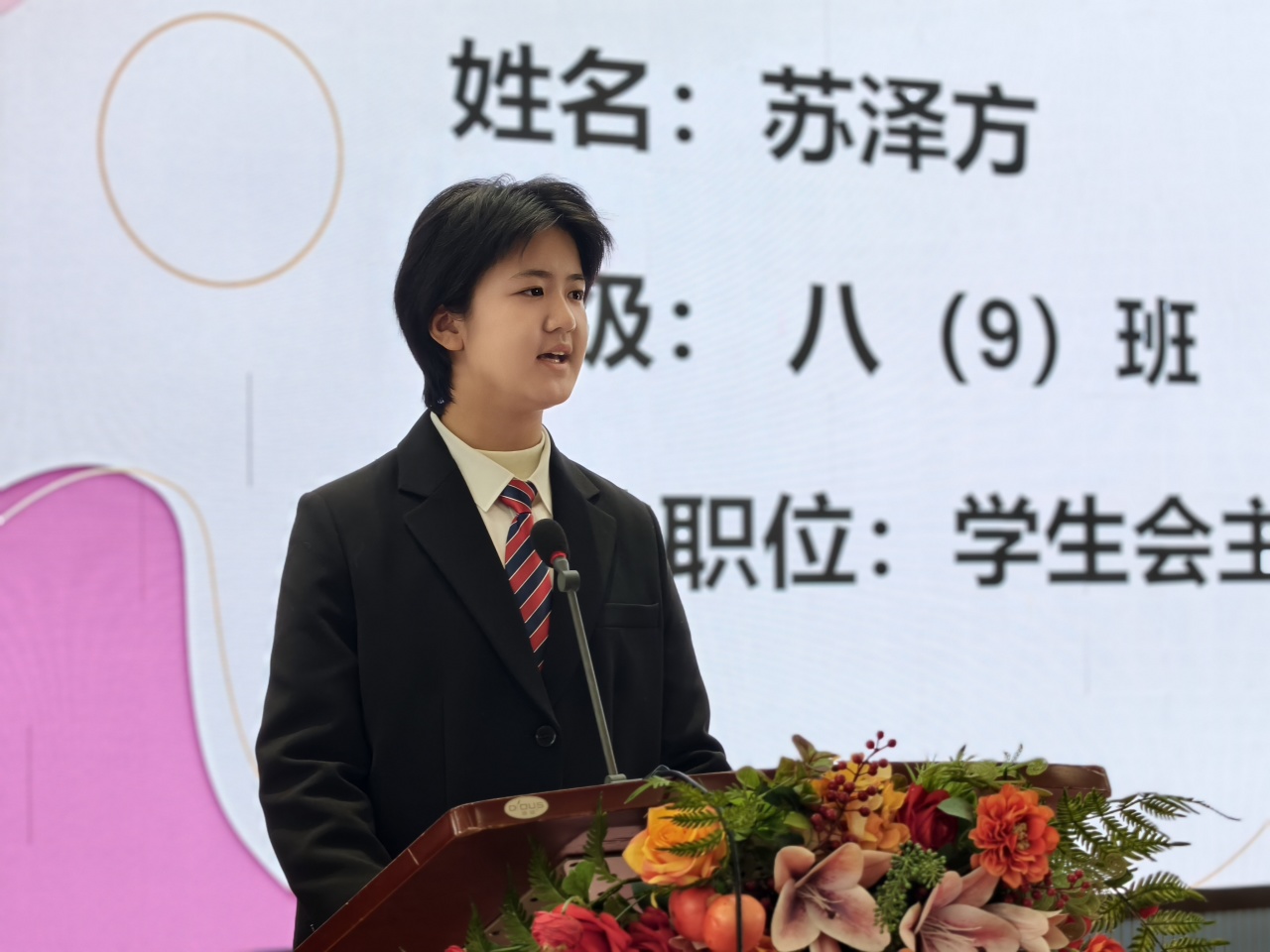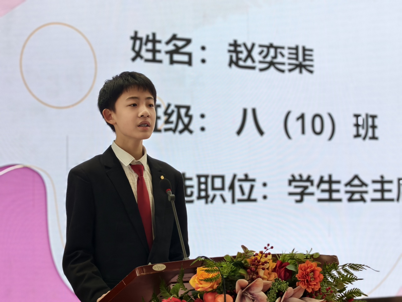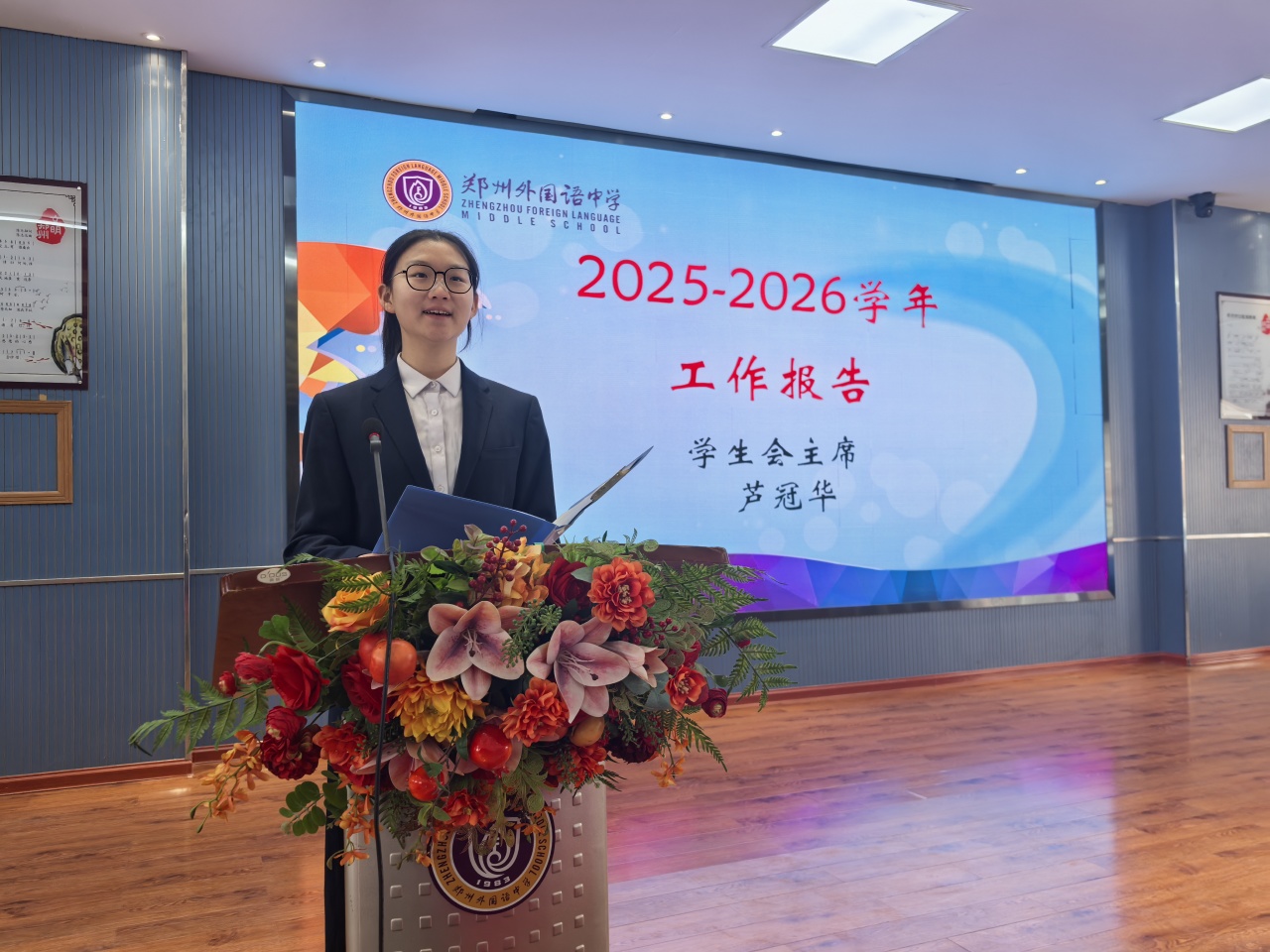 郑州外国语中学德育校长刘淑清在致辞中深情寄语全体同学,她强调中学时代是人生中充满朝气与梦想的黄金阶段,学生代表不仅是一份荣誉,更是一份沉甸甸的责任,勉励大家要当好同学的“代言人”和成长路上的“排头兵”。同时,她对学生会过去一年的辛勤付出表示感谢,并对新一届学生会提出了“服务为本、公正为先”的期望,鼓励同学们在青春的赛道上奋力奔跑,书写属于自己的华彩篇章。