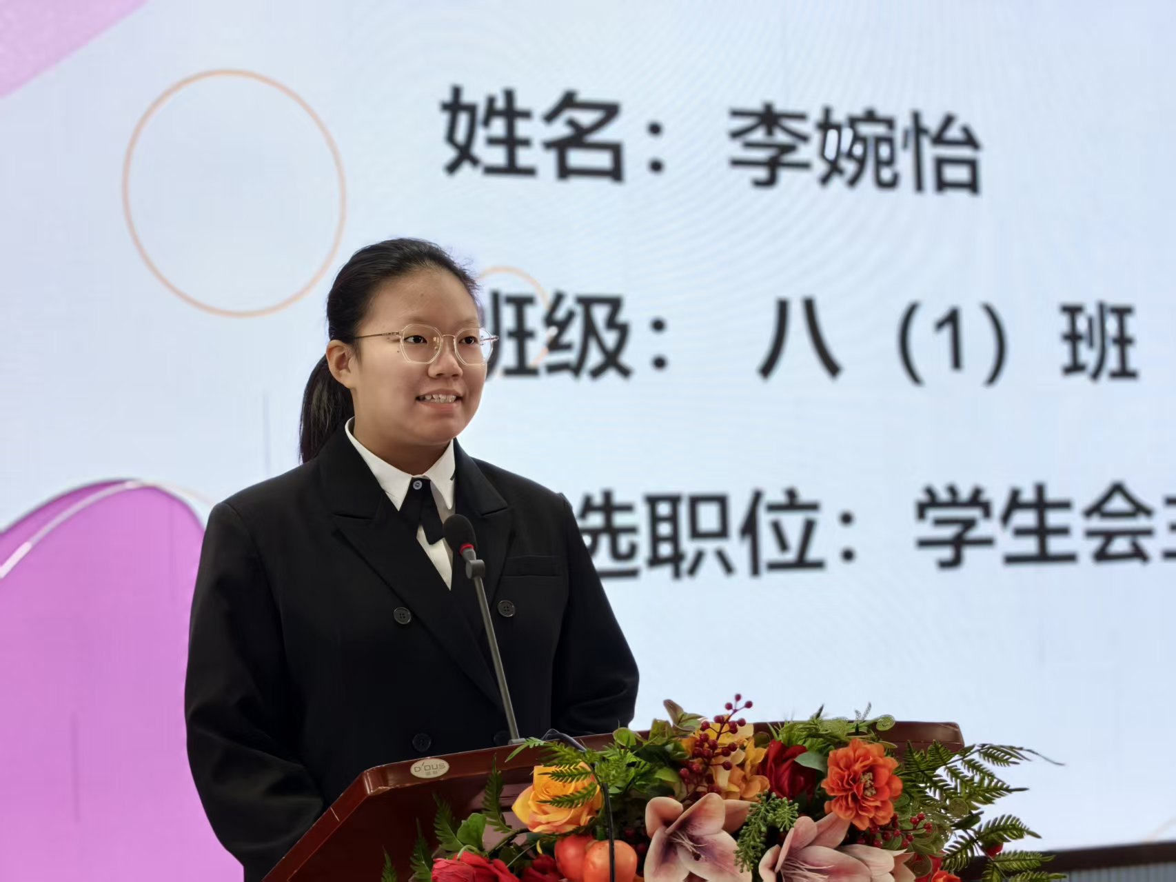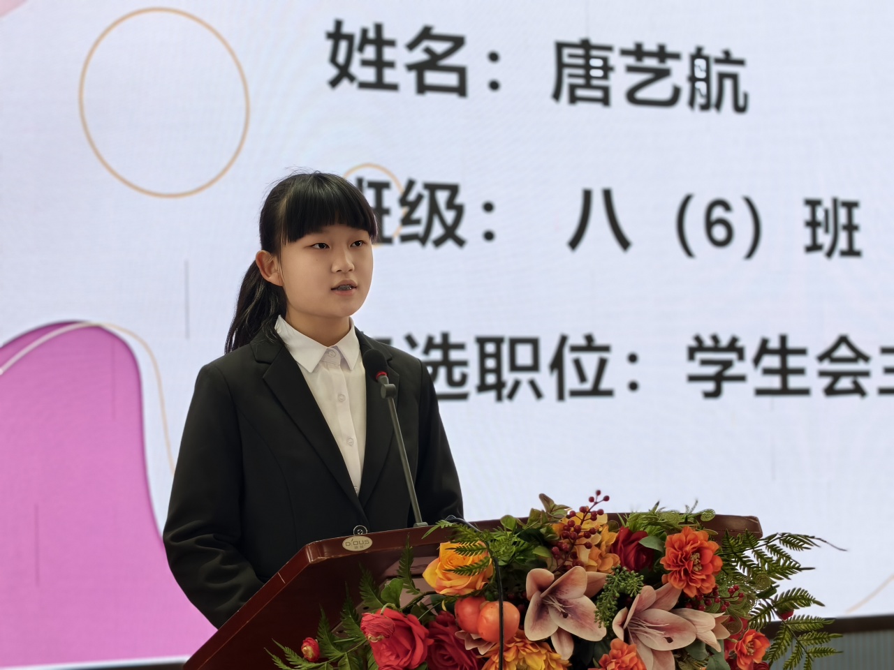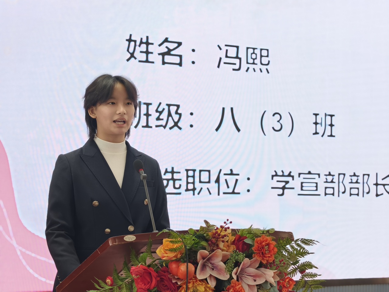 郑州外国语中学德育校长刘淑清在致辞中深情寄语全体同学,她强调中学时代是人生中充满朝气与梦想的黄金阶段,学生代表不仅是一份荣誉,更是一份沉甸甸的责任,勉励大家要当好同学的“代言人”和成长路上的“排头兵”。同时,她对学生会过去一年的辛勤付出表示感谢,并对新一届学生会提出了“服务为本、公正为先”的期望,鼓励同学们在青春的赛道上奋力奔跑,书写属于自己的华彩篇章。