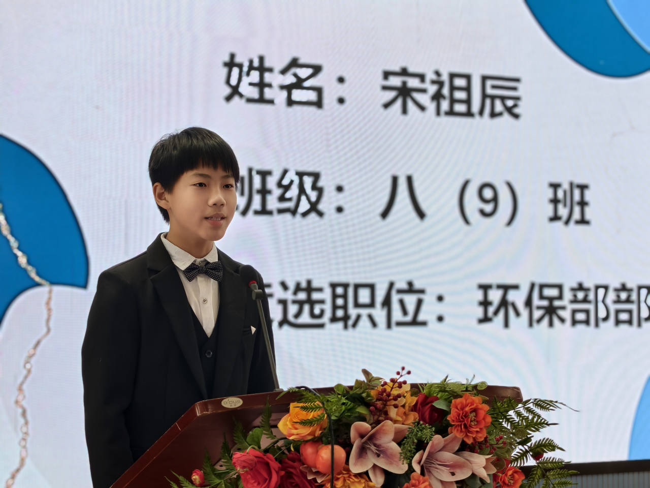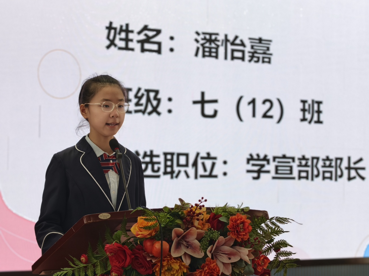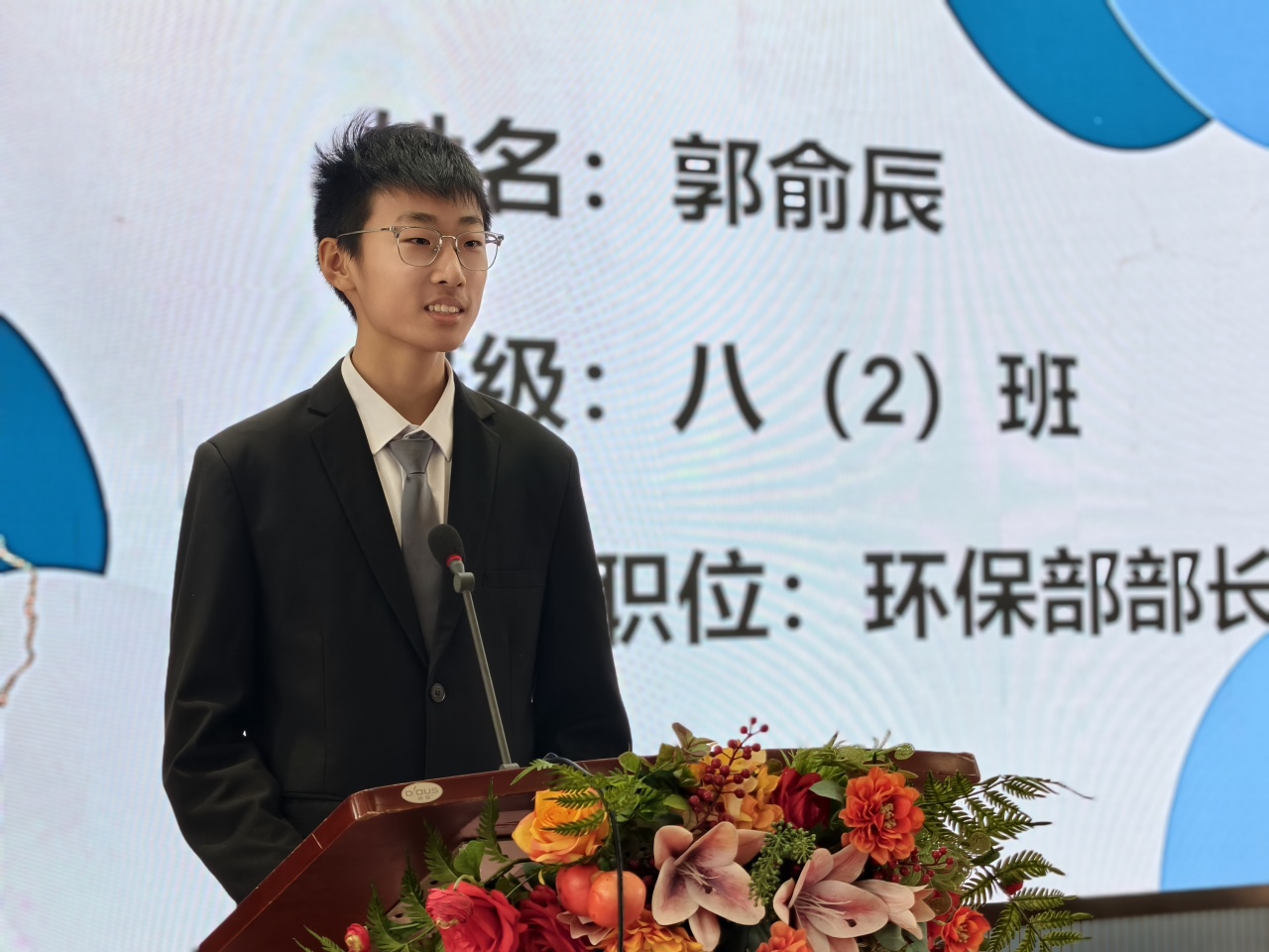 主持人:七10班陈炫霖(男) 七8班王靖仪(女)