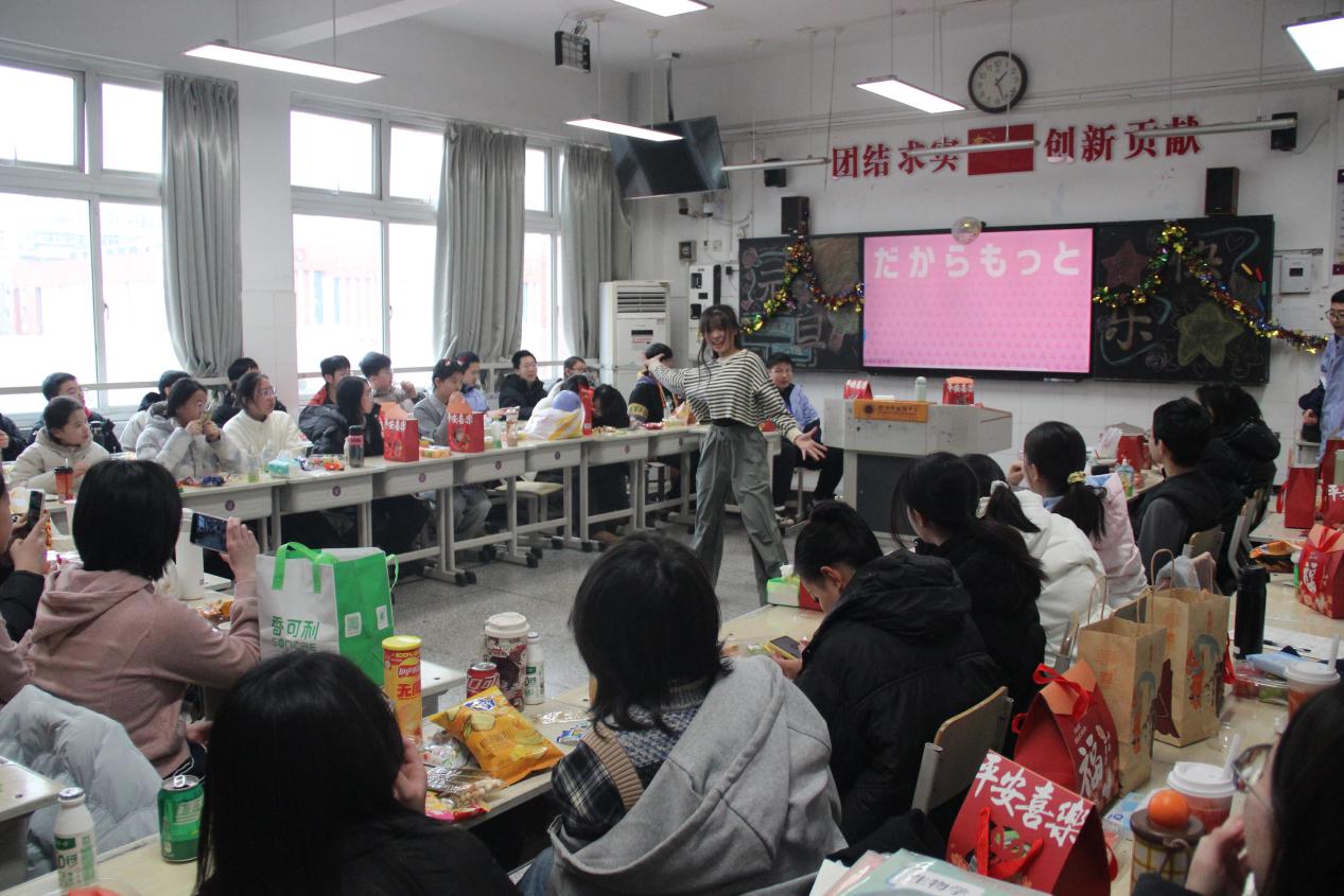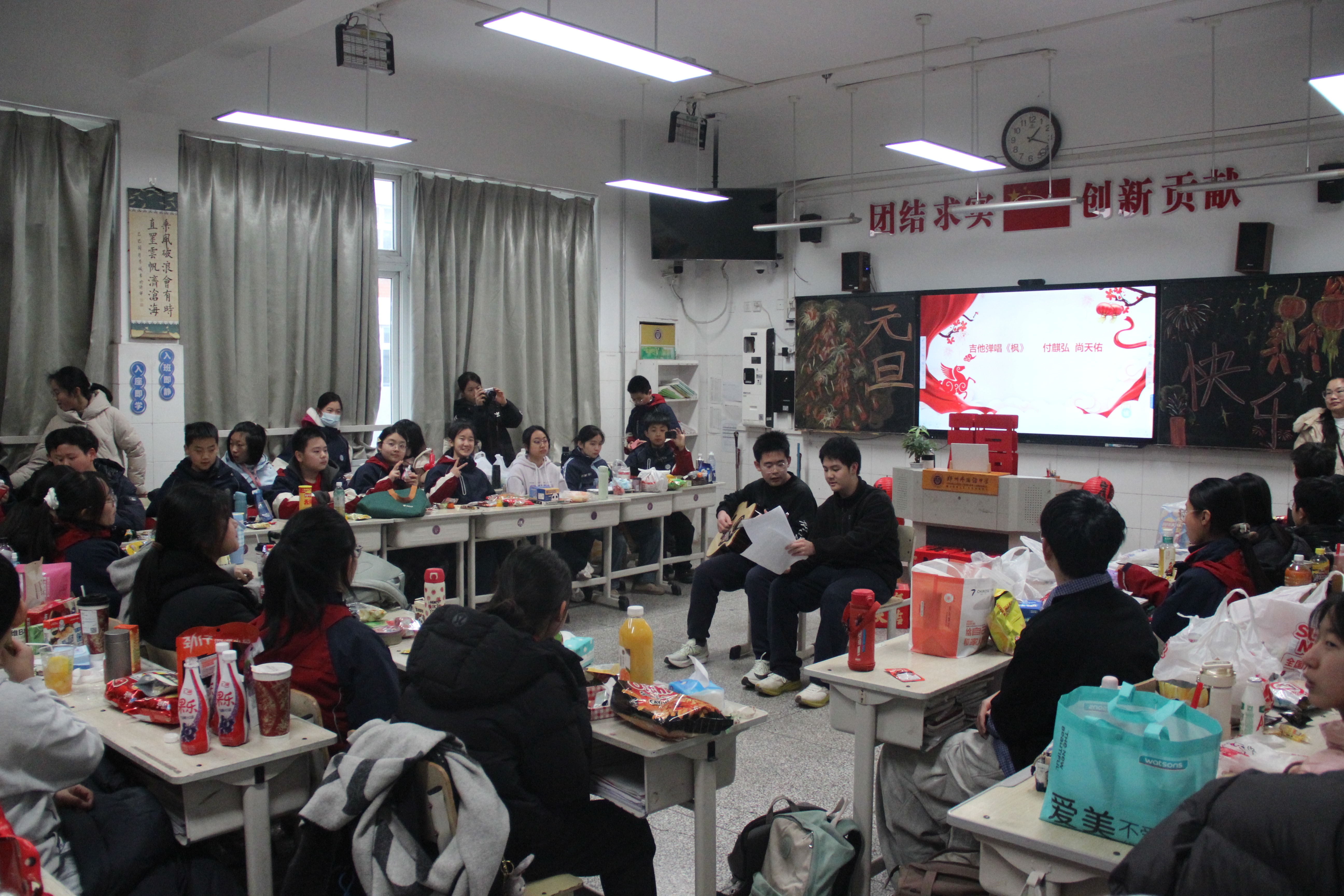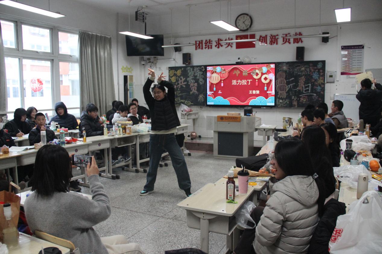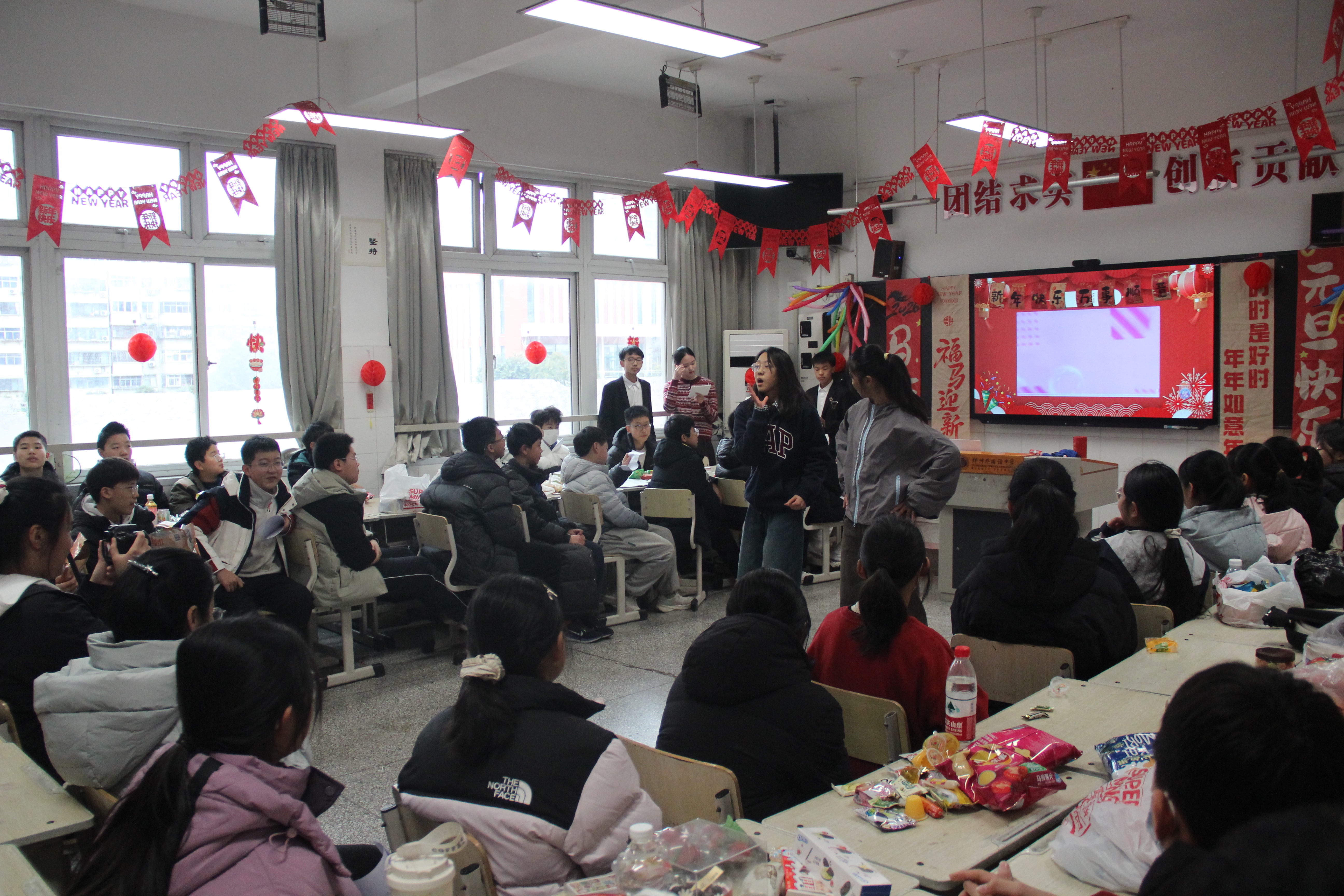 活力飞扬,艺彩纷呈。各班联欢活动由学生自主策划、自主编排,班主任全程护航指导,节目形式涵盖器乐演奏、歌舞串烧、诗歌朗诵、情景小品、经典诵读、趣味竞猜等,充分展现了郑外学子 “尊师、勤奋、多思、进取” 的学风特质。中西器乐轮番登场,时而激昂澎湃,时而婉转悠扬,碰撞出别样的艺术火花;舞蹈表演风格多元,现代舞动感十足,古典舞衣袂翩跹,尽显少年学子的多艺风采;情景小品以幽默诙谐的情节再现校园日常,引发全场共鸣;诗歌朗诵铿锵有力,字里行间饱含着郑外学子的家国情怀与远大志向。班级内掌声、喝彩声此起彼伏,师生互动游戏环节更是将气氛推向高潮,欢声笑语中,师生情谊愈发深厚,班级凝聚力进一步增强。