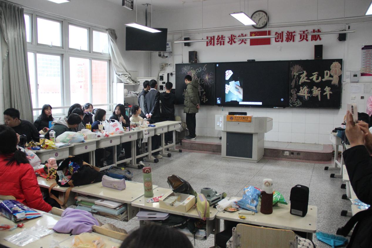 元旦的脚步临近,校园早已被浓浓的喜庆氛围包裹。各班同学群策群力,以灵动创意装扮教室:色彩鲜亮的彩带缠绕梁柱,寓意美好的灯笼悬挂窗前,每一处布置都饱含着学子对新年的憧憬与期盼,让温馨的班级成为欢乐的港湾。