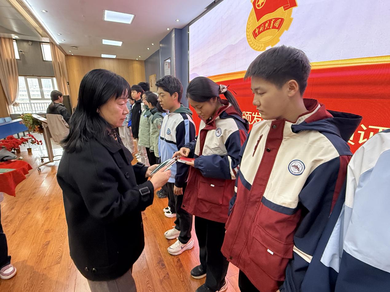 德育校长刘淑清在讲话中为新团员送上殷切嘱托。她围绕习近平总书记关于青年追求政治进步“人生三部曲”的重要论述,深刻阐释了加入共青团的政治意义,勉励新团员要明确责任使命,主动接受政治训练、加强政治锻造,以成长为合格共产党员为人生目标,努力成为社会主义事业的合格建设者和可靠接班人,在中国式现代化建设的新征程中挺膺而出、勇挑重担。