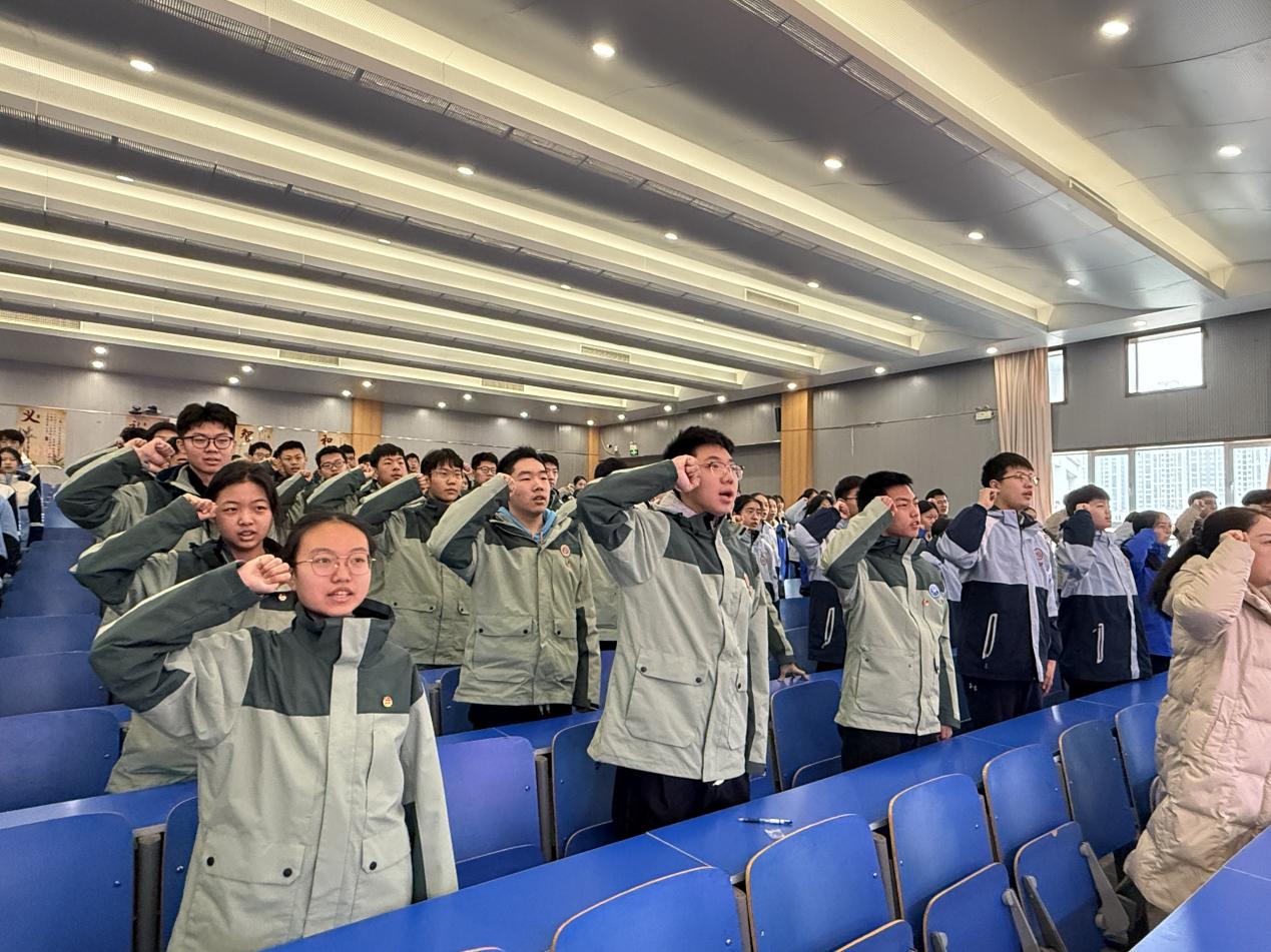 2026年1月14日,郑州外国语中学报告厅内旌旗飘扬、气氛庄严,新团员入团仪式在此隆重举行。德育校长刘淑清、团委书记赵振宇、九年级年级长杨莉与新团员齐聚一堂,共同见证青年学子迈入中国共产主义青年团的光荣时刻。仪式由9.12班团支部新团员马煜茗主持,在激昂奋进的氛围中完成了一场浸润初心、砥砺使命的青春洗礼。