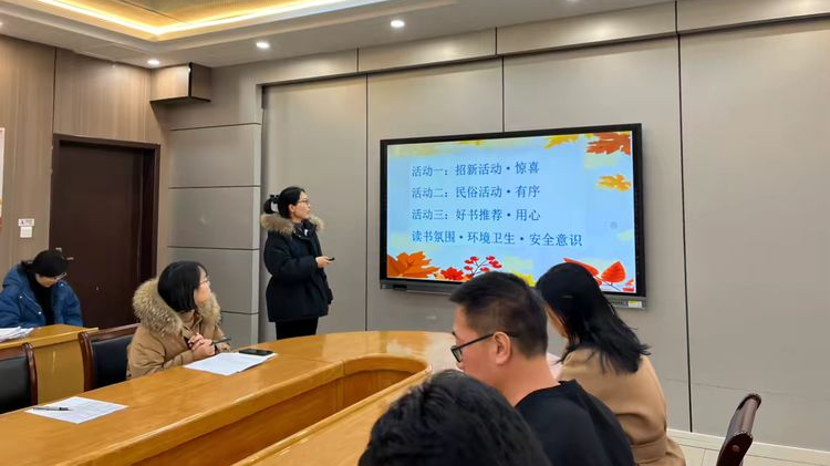 其次是悦读社进行分享,指导老师从“活动一:捐新活动·惊喜”“活动二:民俗活动·有序”“活动三:好书推荐·用心”等三大主线,同步涵盖“读书氛围·环境卫生·安全意识”三位一体支撑体系,凸显了社团活动管理和育人的重要性。